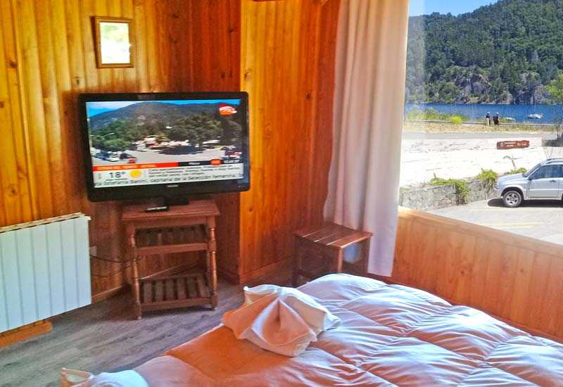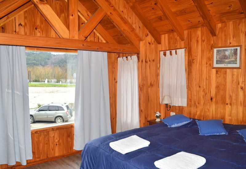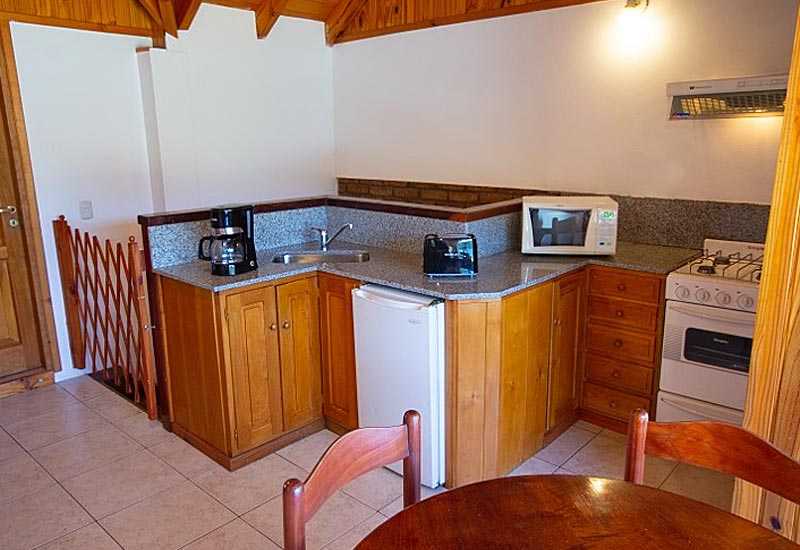 Cabañas frente al lago Lacar, en San Martin de los Andes. Destacadas, además, por sus cocinas con barra desayunador y hogar a leña. Estas cabañas tienen de superficie 100 m2 en 2 plantas, 2 baños completos uno en cada planta. 3 dormitorios con camas King Size, living, comedor, micro ondas, tostadora eléctrica, cocina con horno, vajilla completa, calefacción por radiantes, LCD 39" en living y dormitorio principal.