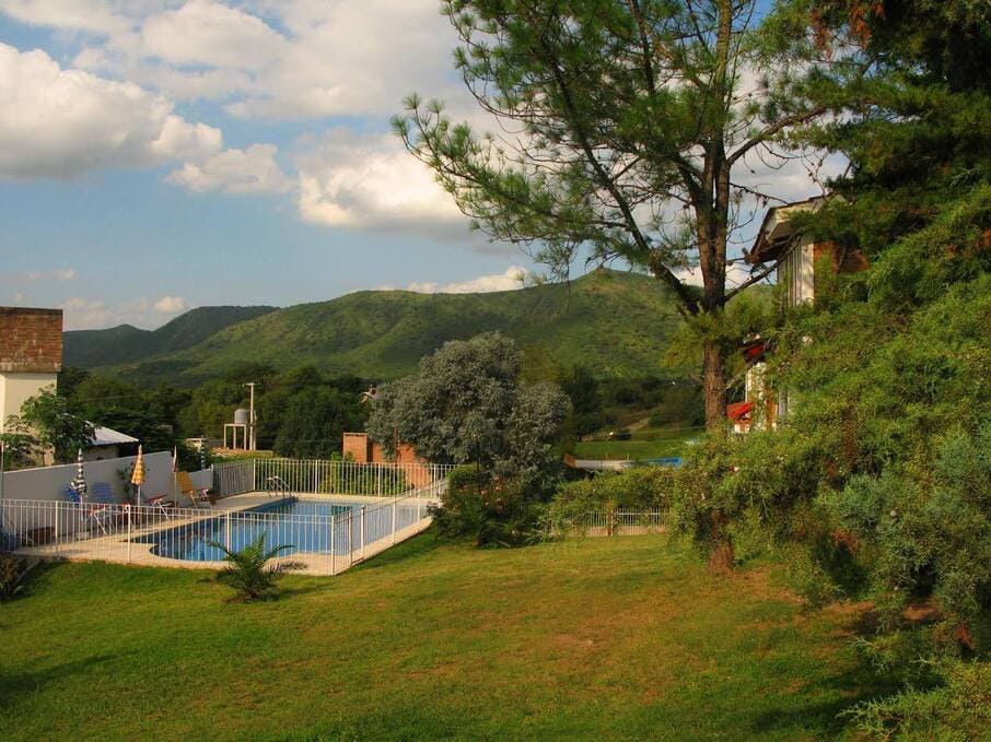 Posada Del HalcónRío Paraná 718, San Antonio de ArredondoAmplios chalets 2 dormitorios equipados con sommiers, con TV cable en la sala de estar y el dormitorio principal, techos de madera y teja cortinados. Calefacción con tiro balanceado en los dormitorios y sala de estar. Ventilador de techo, Cocina y vajilla completas, microondas, heladera, muebles de algarrobo, ventanas en todos sus ambientes. Sala de estar muy cómoda, con diván y cama marinera. Cochera y parrilla cubiertas e individuales. Secador de cabellos, Recepción. Amplio parque de 1 hectárea con la mejor vista en Villa General Belgrano de las Sierras Chicas, el Valle de Calamuchita y las Altas Cumbres. Piscina para temporada de verano. Solarium, nuevo diseño de sombrillas, reposeras, sillas y mesas. Mesas y sillas de jardín en cada cabaña. Juegos para niños, hamacas. Suite de categoría con sommiers King-size, LCD y baño con Hidromasaje.