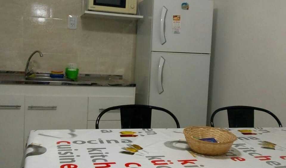 - Cocina equipada con microondas, tostadora, pava eléctrica, heladera con freezer y vajillas.