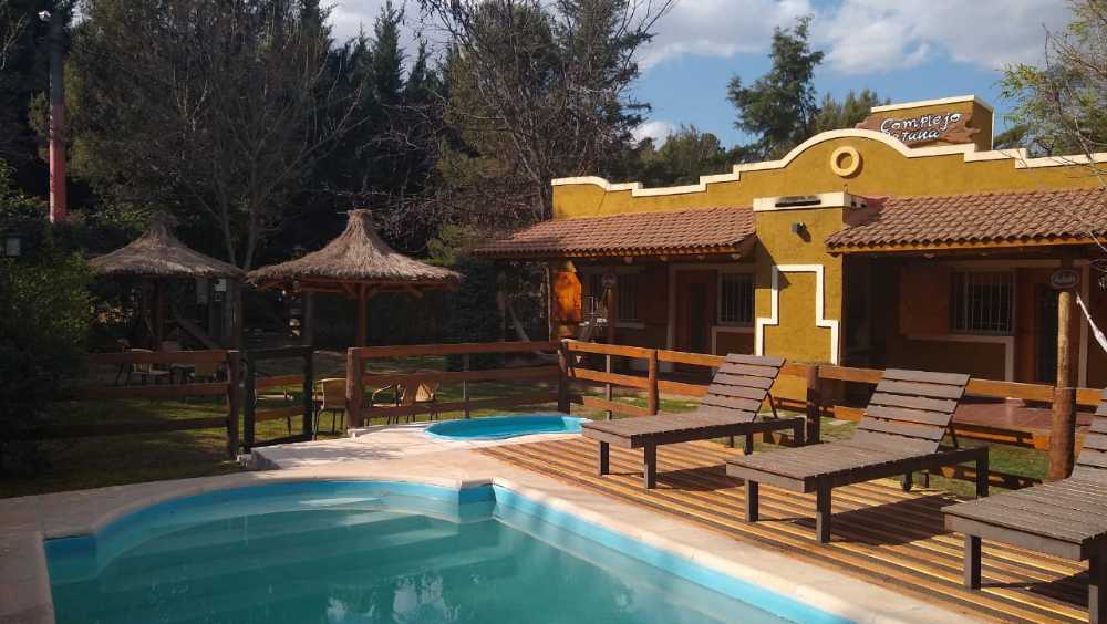 Cabañas Los AromosLos Paraisos 3190, Potero de los FunesCabañas "Los Aromos" en Potrero de los Funes le ofrece alojamiento, en un predio cerrado y parquizado, con pileta climatizada, contando con cabañas tipo "loft" de 1 y 2 dormitorios totalmente equipadas. Disfrute de una estadía soñada en, en un entorno único, dónde además de descansar, puede realizar actividades cómo remo, trekking, pesca, mountain bike, windsurf, cabalgatas, circuito de TC2000, eventos, paseos artesanales y disfrutar de espectaculos de primer nivel como El Carnaval de Rio en San Luis, carreras de TC y FIA. Los esperamos en San Luis!! Servicios en cabañas Los Aromos Cabañas de 1-2 dormitorios y cabañas loft con equipamiento completo. Vajilla completa, heladera, cocina, tv cable 70 canales, microondas, cochera cubierta, asadores individuales al costado de las cabañas, mesas y sillas para exterior, amplio parque iluminado, árboles autóctonos. Servicio de mucama Excelente ubicación sobre el circuito que rodea al lago Potrero de los Funes, a metros del río, en un predio de 2000 m2 parquizado y totalmente cerrado, seguro y de muy fácil acceso. AIRE ACONDICIONADO SPLIT EN TODAS LAS CABAÑAS CALEFACTORES A GAS TIRO BALANCEADO PISCINA CLIMATIZADA CON SOLARIUM ROPA DE CAMA Y TOALLAS INTERNET wi-fi PARQUE CON JUEGOS INFANTILES