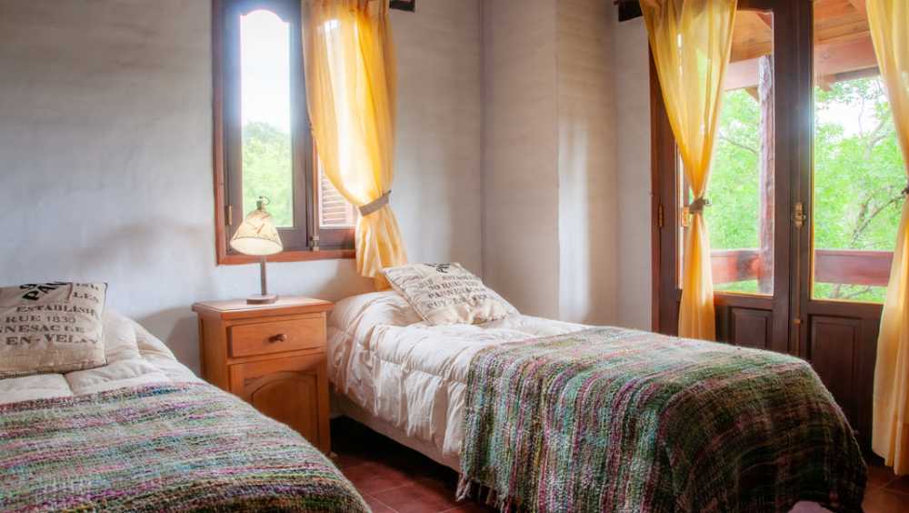 Hosteria Ham SaVirapitá 685, Santa MónicaUn bello lugar rodeado de naturaleza, quietud y paz, ideal para el reencuentro con uno mismo y con las personas que más amamos. 7 amplias y confortables habitaciones en planta alta (acceso por escalera exterior), con baño privado completo, con comodidades para 2 a 5 pasajeros, decoradas con muebles construidos artesanalmente en madera de ciprés, con estupendas vistas panorámicas de las sierras, se provee ropa blanca (sabanas), (por seguridad y protocolos covid, no se ofrecen toallas/toallones), servicio de mucama según necesidad, ventiladores, wifi, sin TV. Amplia zona parquizada de 1,5 ha con vegetación autóctona e imponente vista panorámica de las sierras, con un peñon natural de cuarzo, ideal para meditación, relajación y recarga de energía VITAL. Asadores al aire libre y en el quincho, mesas canadienses, bacha para lavado de vajilla. Desayuno tradicional que se ofrece en el salón de té en planta baja. Se puede utilizar el salon de te para almorzar/cenar si se traen la comida o piden delivery; nosotros les ofrecemos sin cargo el servicio de vajilla. Cocheras cubiertas con media sombra (CONSULTE DISPONIBILIDAD) y estacionamiento no techado dentro del predio. Wifi. Complejo emplazado en una tranquila localidad ideal para realizar caminatas disfrutando del canto de las aves, y observando la flora del lugar. A pocas cuadras, se puede acceder a pie, tenemos el rio Grande de Punilla y el arroyo Vaquerías, con costaneras bellamente arboladas y aguas cristalinas. La ubicación de Hostería Ham Sa, equidistante de Villa Carlos Paz y San Marcos Sierras, la hace un lugar perfecto desde el cual recorrer todo el valle de Punilla, conociendo sus muchas opciones y lugares de interés turístico, cultural e histórico, ofreciendo actividades para todos los gustos. El alojamiento en nuestro predio es exclusivo para los pasajeros registrados y alojados. Para un mejor servicio de ellos, no está permitido el ingreso y permanencia de visitas (mayores o menores).